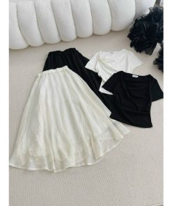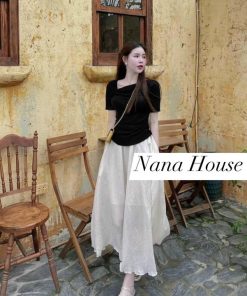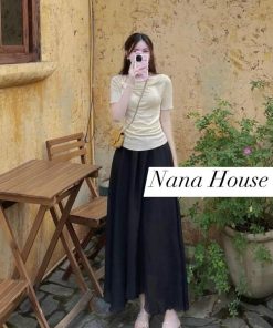 Chất liệu: ÁO THUN TĂM LẠNH – CHÂN VÁY TƠ