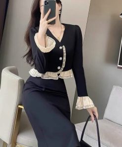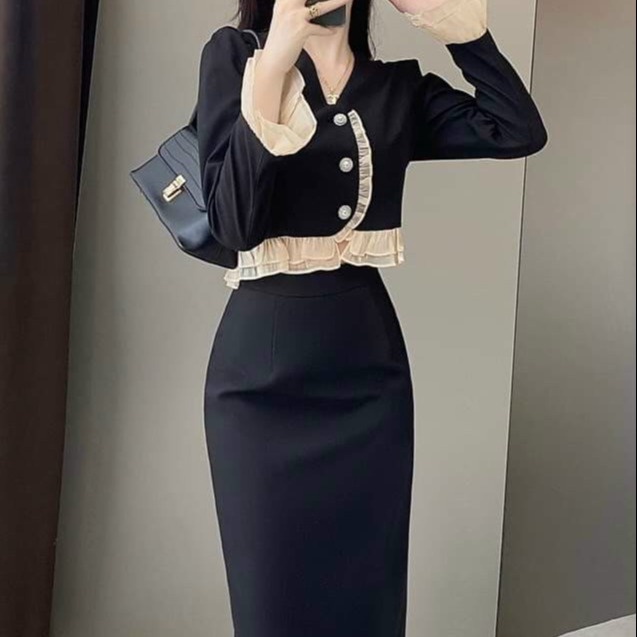 Tên sản phẩm: Set áo tay bèo voan cài nút thật kèm chân váy dài V191 – HAKA MÂY