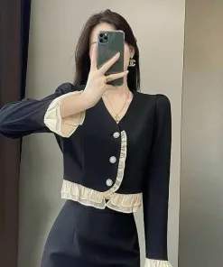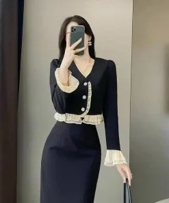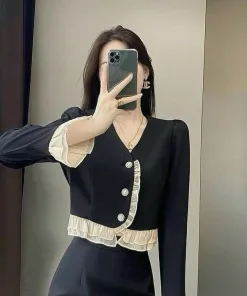 SET ÁO TAY BÈO VOAN CÀI NÚT THẬT KÈM CHÂN VÁY SH807- SAM FREESIZE < 53KG