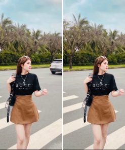 SÉT ÁO THUN GUCCI MIX CHÂN VÁY NGẮN CHỮ A – NANA HOUSE FREESIZE <53KG