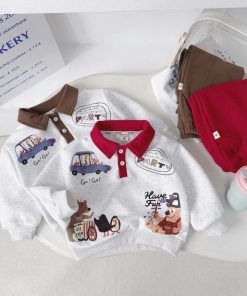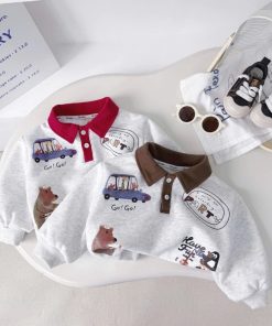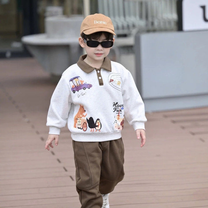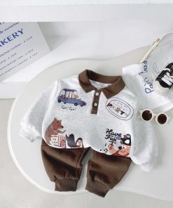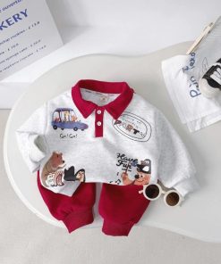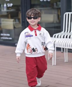 1. Tên sản phẩm : Set Áo Thun Tay Dài Cổ Polo Gấu Quần Bo Chun Cho Bé Trai 1-8 Tuổi Dành Cho Bé Trai