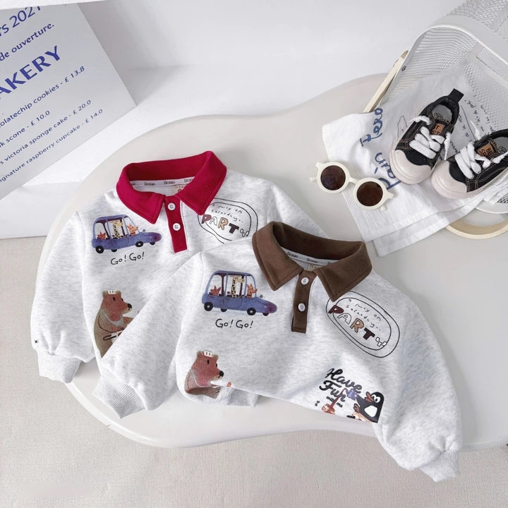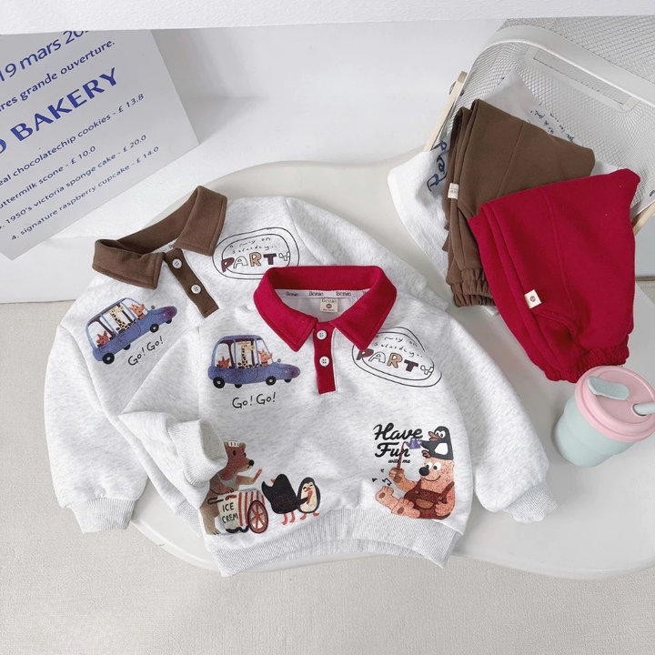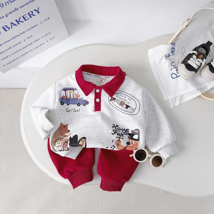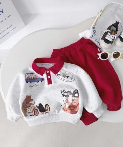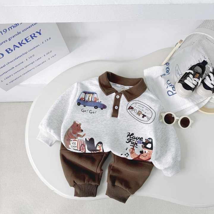 Set Áo Thun Tay Dài Cổ Polo Gấu Quần Bo Chun Cho Bé Trai 1-8 Tuổi Dành Cho Bé Trai