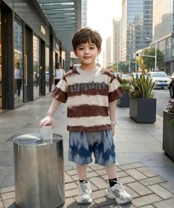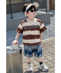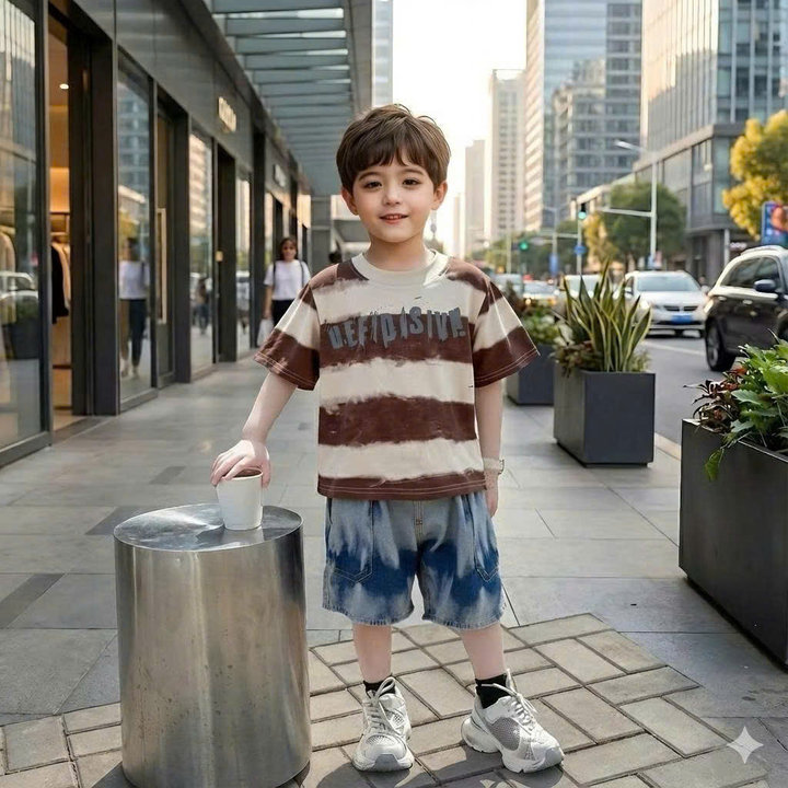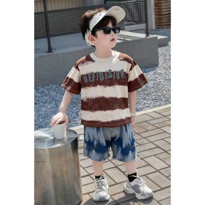 1. Tên sản phẩm : Set Áo Thun Tay Ngắn Sọc In Chữ Quần Đùi Denim 1-5 Tuổi Dành Cho Bé Trai