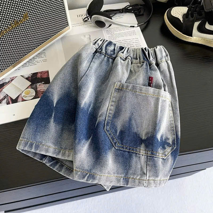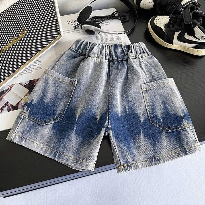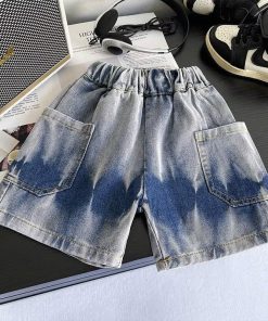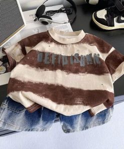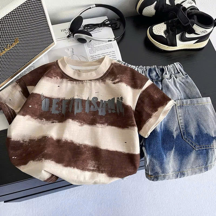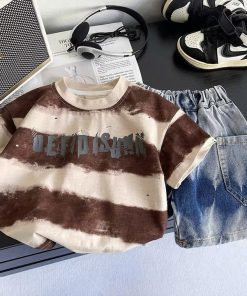 Set Áo Thun Tay Ngắn Sọc In Chữ Quần Đùi Denim 1-5 Tuổi Dành Cho Bé Trai