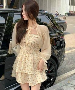 Tên sản phẩm: Set Áo Voan Kèm Đầm Xốp In Hoa Nhí (Váy Có Lót) – CLOUDY DRESS
