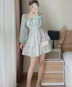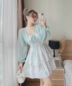 Tên sản phẩm: Set áo voan kèm đầm xốp in hoa nhí ( váy có lót ) V43 – HAKA MÂY