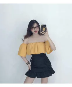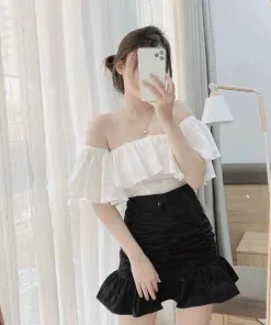 - Tên sản phẩm: Set Áo Voan Lụa Bẹt Vai Kèm Chân Váy Nhún Đuôi Cá – Lê Phương Boutique