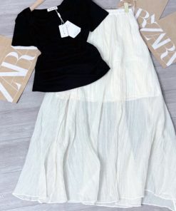 - Một set áo + chân váy, phù hợp cho ce mặc đi chơi,đi làm,cafe…