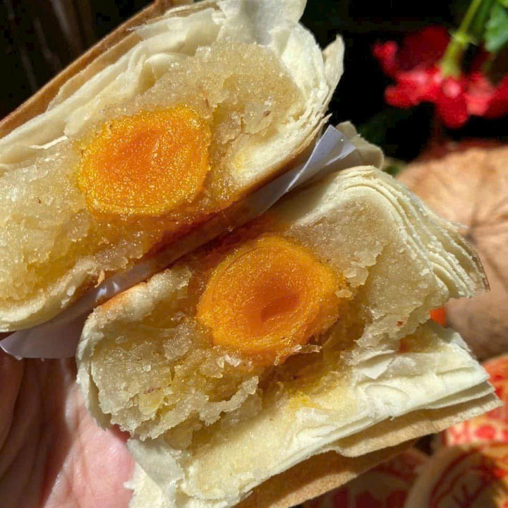 ✔️ Vỏ pía nhiều lớp mỏng mềm, nướng vàng truyền thống – thơm khó cưỡng.