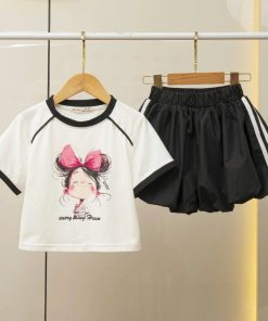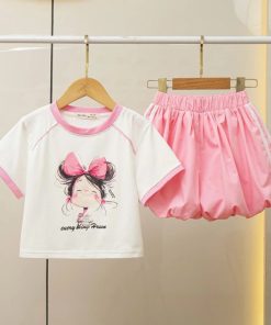 1. Tên sản phẩm : Set Bé Gái, Đồ Bé Gái Áo Thun Ngắn Tay In Bé Gái Dễ Thương Kèm Quần Sọt Bí Ngô Từ 12-40kg Dành Cho Bé Gái