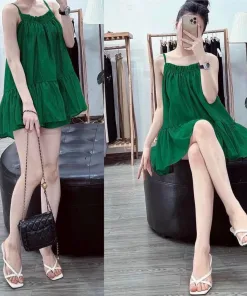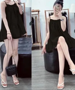 Set đồ bao gồm áo 2 dây form dài kèm quần sort với chất vải lụa dày dặn, mềm mại, thoáng mát.
