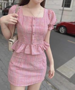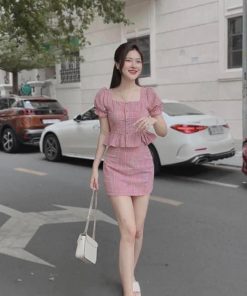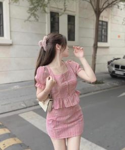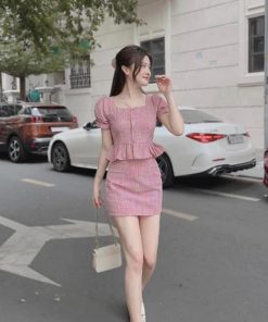 SET BỘ ÁO CỔ VUÔNG TAY BỒNG CHIẾT EO XÒE MIX CHÂN VÁY (CÓ LÓT) BT29 – NANA FREESIZE<53KG