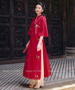 Chất liệu: ÁO DÀI TƠ XỐP THÊU – QUẦN LỤA LATIN