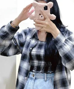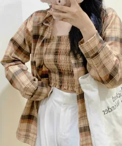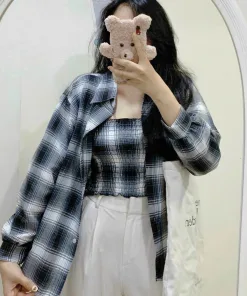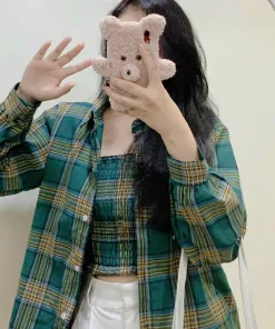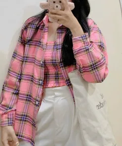 Sét Bộ Áo Sơ Mi Nữ Dáng Kiểu Hàn Quốc Phong Cách Form Rộng Sọc Từng Ô Áo Chất Vải Mát Mẻ Hàng Hot Trend-HTM FASHION