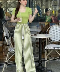 SET BỘ ÁO THUN TĂM LẠNH MIX QUẦN XỐP SỌC T100H85- SAM FREESIZE < 55KG