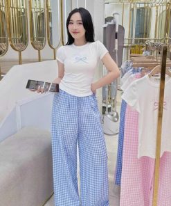 SET BỘ ÁO THUN TĂM LẠNH PHỐI QUẦN ĐŨI XỐP CARO BH8009I- NANA FREESIZE < 53KG