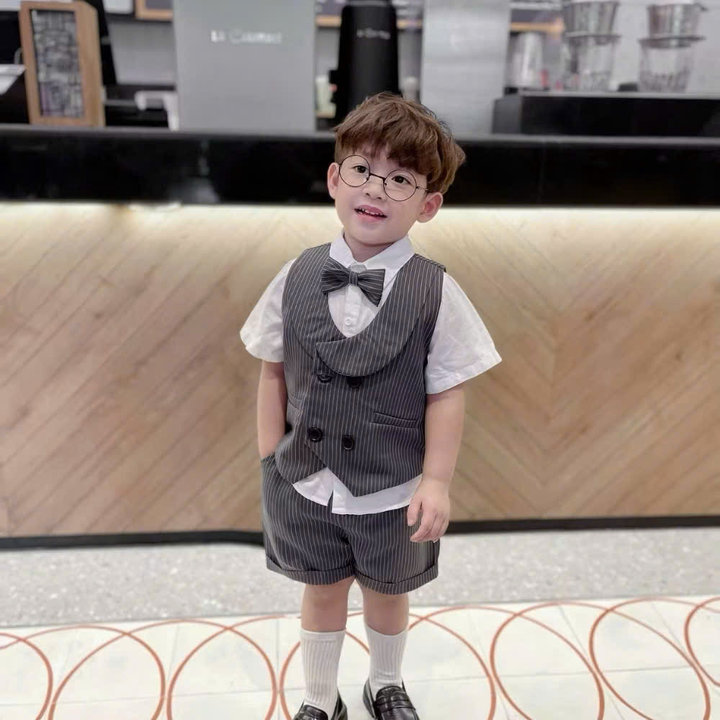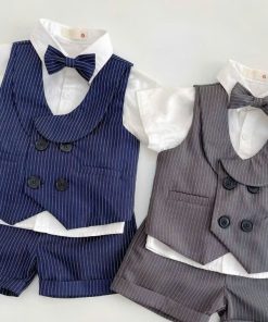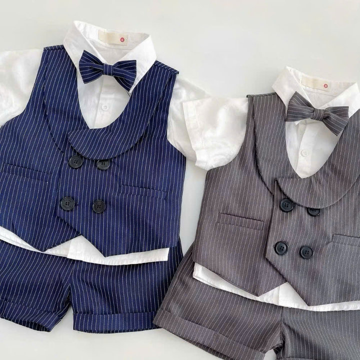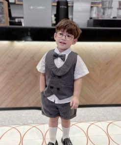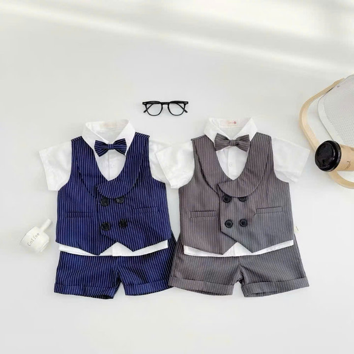Set Bộ Đồ Công Tử Cổ Sam Kẻ Sọc Cà Vạt Nơ 1-8 Tuổi Dành Cho Bé Trai