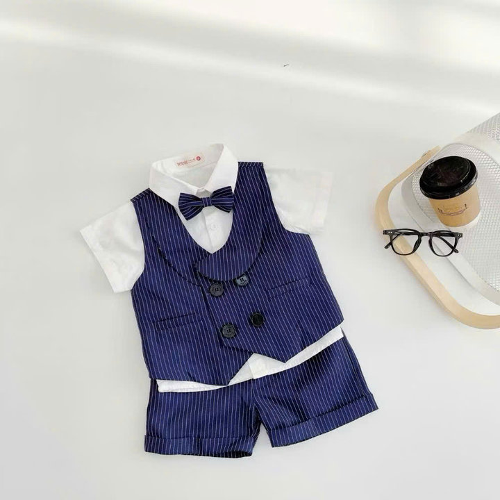 1. Tên sản phẩm : Set Bộ Đồ Công Tử Cổ Sam Kẻ Sọc Cà Vạt Nơ 1-8 Tuổi Dành Cho Bé Trai