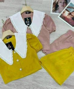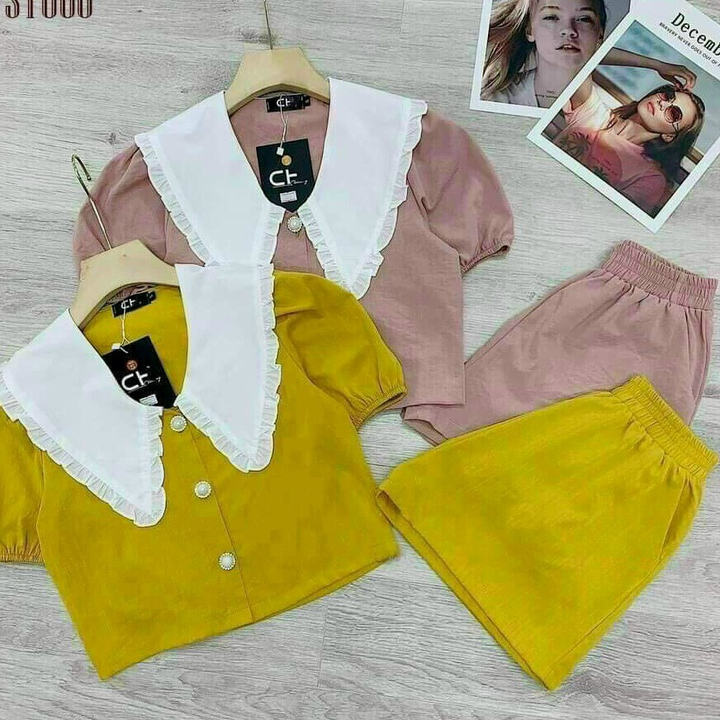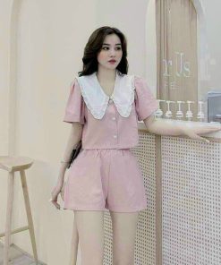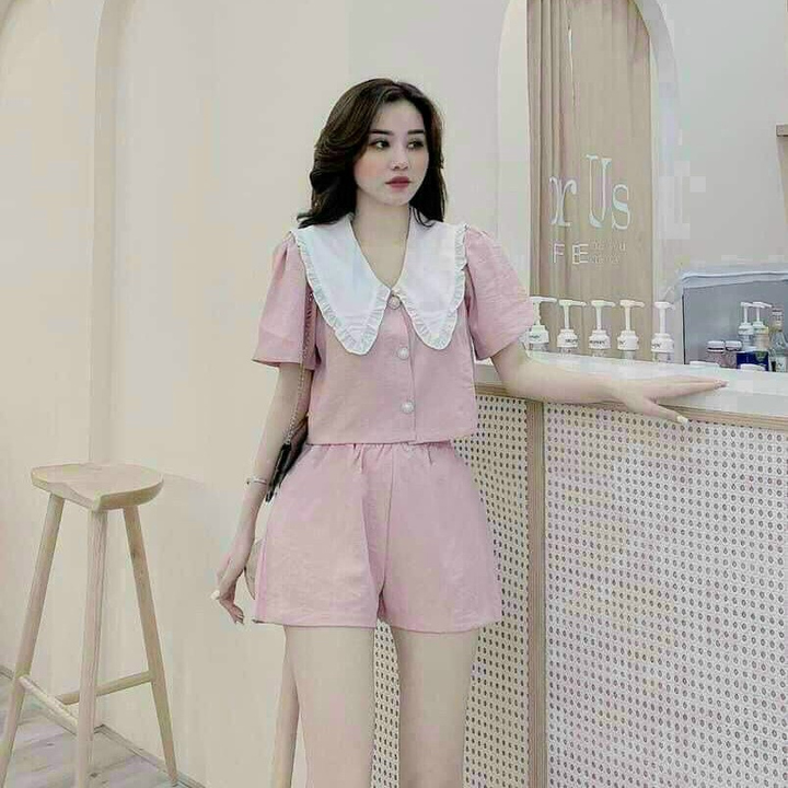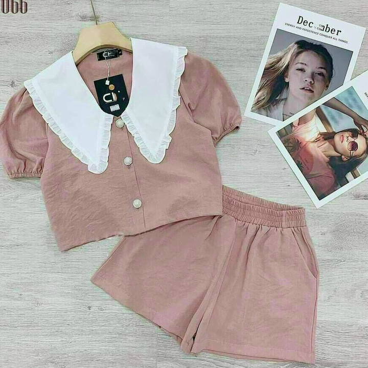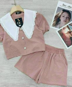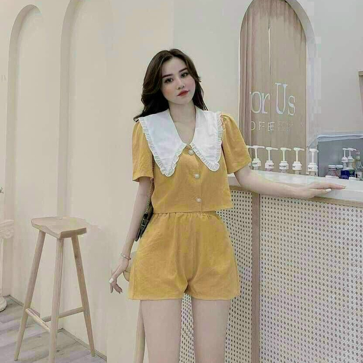 Tên sản phẩm: SET BỘ ĐỒ ĐÙI ÁO CROPTOP CỔ SEN TAY NGẮN KÈM QUẦN SHORT CHẤT ĐŨI NHĂN T942