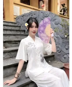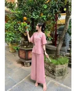 BỘ ĐỒ LAM NỮ VẢI LỤA THÊU HOA MẪU ĐƠN
