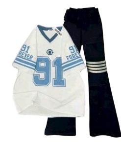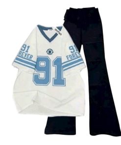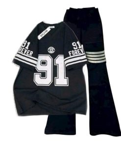 – Tên Sản phẩm: Sét bộ đồ mùa hè quần ống loe + mix áo phông unisex form thụng tay lỡ 91