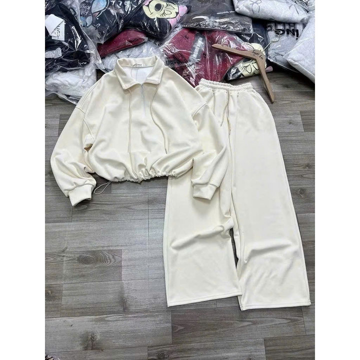 Mô Tả Sản Phẩm:Sét bộ đồ nỉ 2da, dáng xinh, khóa cổ trơn mềm mại
