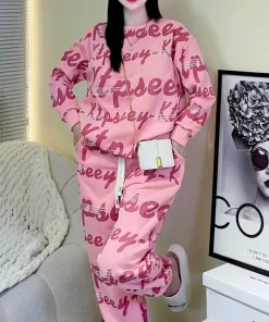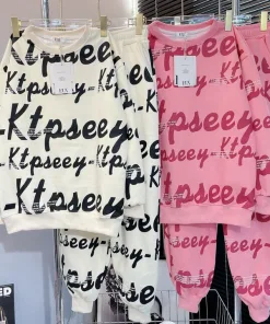 SÉT BỘ ĐỒ NỈ NỮ CỔ TRÒN ỐNG BO IN PHỐI NHIỀU CHỮ KTPSEEU – HTM FASHION