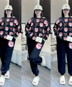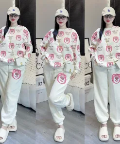 SÉT BỘ ĐỒ NỈ NỮ IN HỌA TIẾT GẤU LOOK SIÊU HOT – HTM FASHION