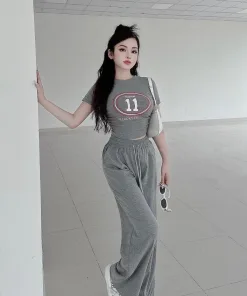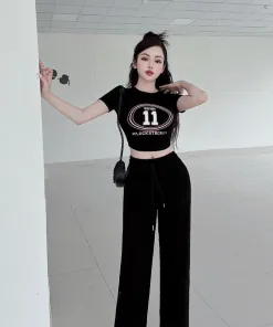 SET BỘ ĐỒ NỮ 11 ÁO CROTOP MIX QUẦN ỐNG RỘNG BT770 – NANA FREESIZE < 55KG
