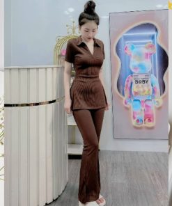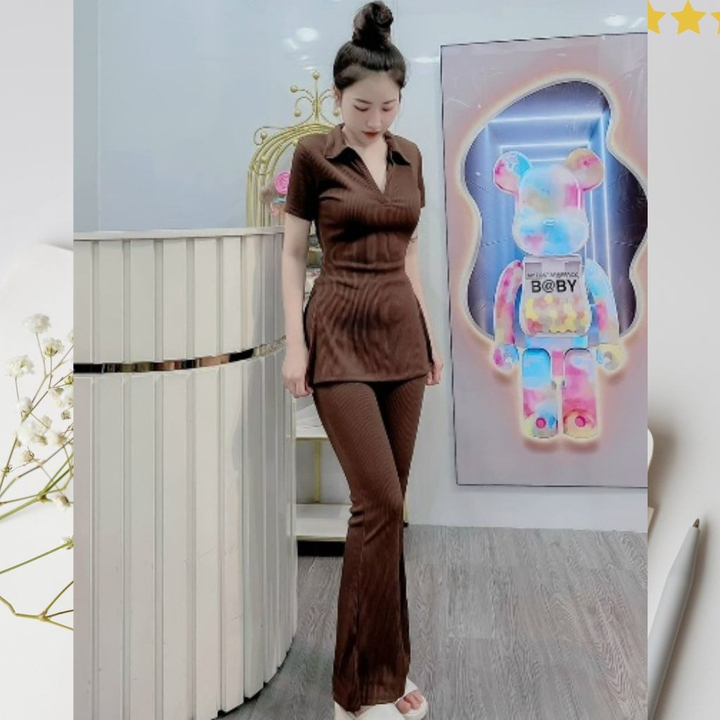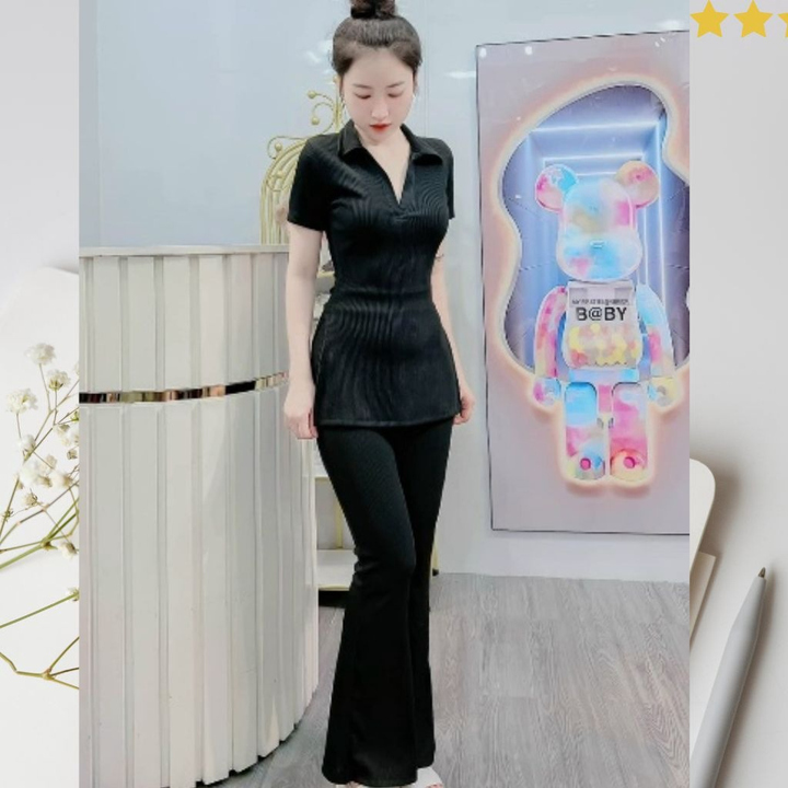 Tên sản phẩm: SET BỘ ĐỒ NỮ ÁO CỔ SƠ MI TAY NGẮN XẺ TÀ KÈM QUẦN DÀI M889