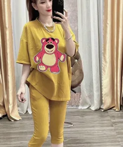 Tên sản phẩm: SET BỘ ĐỒ NỮ ÁO CỔ TRÒN TAY NGẮN FORM RỘNG KÈM QUẦN LỬNG M1016