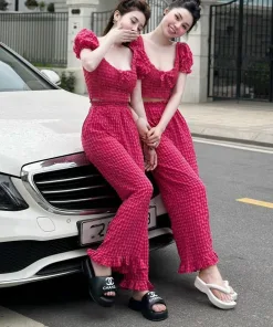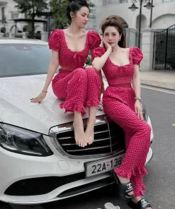 Tên sản phẩm: SET BỘ ĐỒ NỮ ÁO CROPTOP CỔ VUÔNG TAY NGẮN KÈM QUẦN DÀI CHẤT ĐŨI XỐP M880
