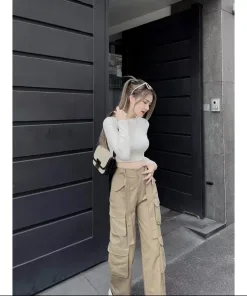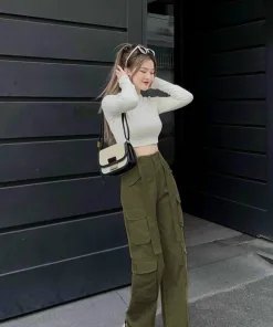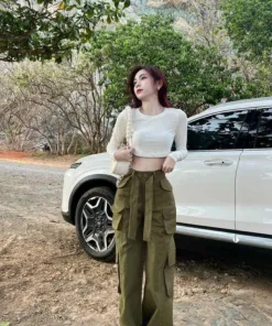 SET BỘ ĐỒ NỮ ÁO CROPTOP MIX QUẦN ỐNG RỘNG UG151 – NANA FREESIZE < 53KG