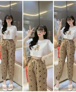 Tên sản phẩm: SET BỘ ĐỒ NỮ ÁO CROPTOP TAY NGẮN KÈM QUẦN MIKEY M1017
