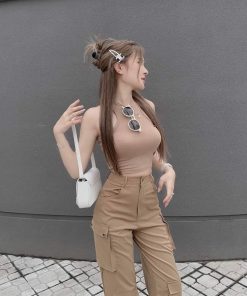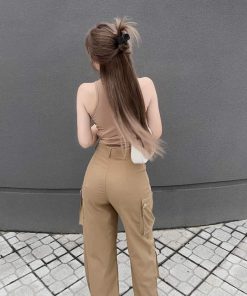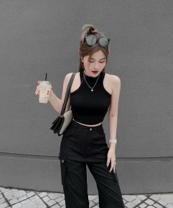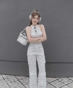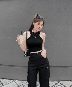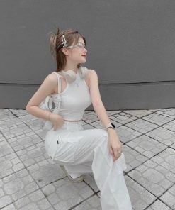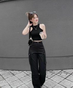 SET BỘ ĐỒ NỮ ÁO CROTOP BA LỖ MIX QUẦN TÚI HỘP SA976 – SAM FREESIZE < 55KG