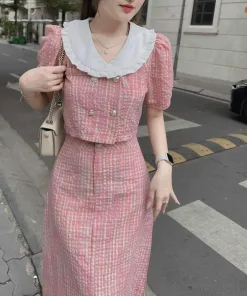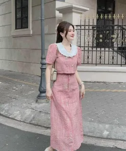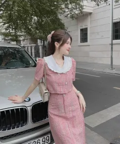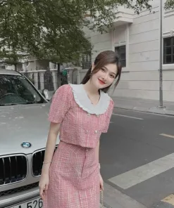 SET BỘ ĐỒ NỮ ÁO CROTOP CỔ BÈO MIX CHÂN VÁY ĐŨI DÀI BT898 – NANA FREESIZE < 53KG