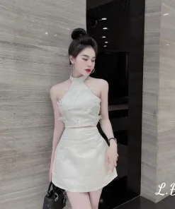 SET BỘ ĐỒ NỮ ÁO CROTOP CỔ YẾM MIX CHÂN VÁY NGẮN SA875 – SAM FREESIZE < 53KG