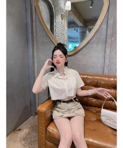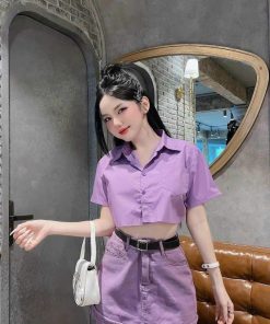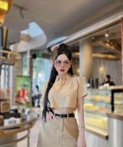 SET BỘ ĐỒ NỮ ÁO CROTOP PHỐI CHÂN VÁY KAKI KÈM DÂY NỊT SA151 – SAM FREESIZE < 53KG
