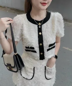 SET BỘ ĐỒ NỮ ÁO CROTOP PHỐI VIỀN MIX CHÂN VÁY 2 LỚP BT951 – NANA FREESIZE < 53KG