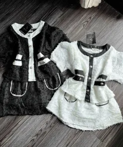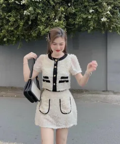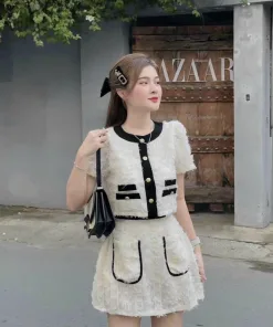 SET BỘ ĐỒ NỮ ÁO CROTOP PHỐI VIỀN MIX CHÂN VÁY 2 LỚP SA957 – SAM FREESIZE < 53KG