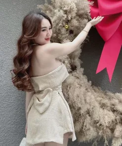 SET BỘ ĐỒ NỮ ÁO ỐNG XẺ TÀ PHỐI QUẦN SHORT BT901 – NANA FREESIZE < 53KG