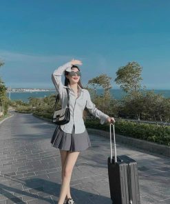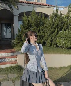 SET BỘ ĐỒ NỮ ÁO SƠ MI HOT TREND MIX CHÂN VÁY XẾP LY DD011 – NANA FREESIZE < 55KG
