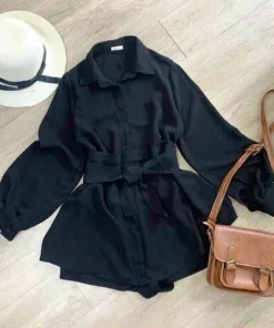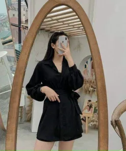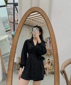 Tên sản phẩm: SET BỘ ĐỒ NỮ ÁO SƠ MI TAY DÀI PHỐI NƠ EO KÈM QUẦN SHORT M837