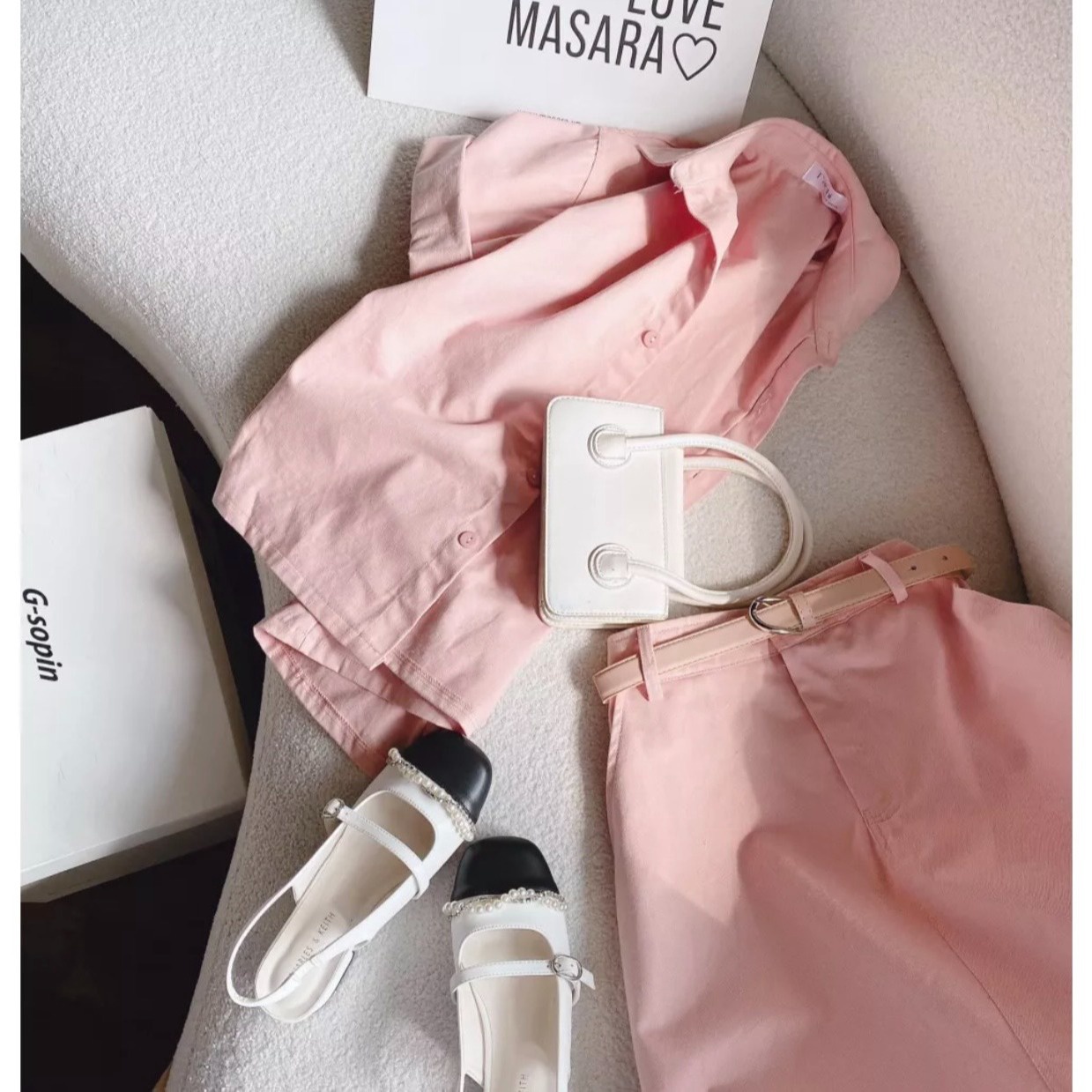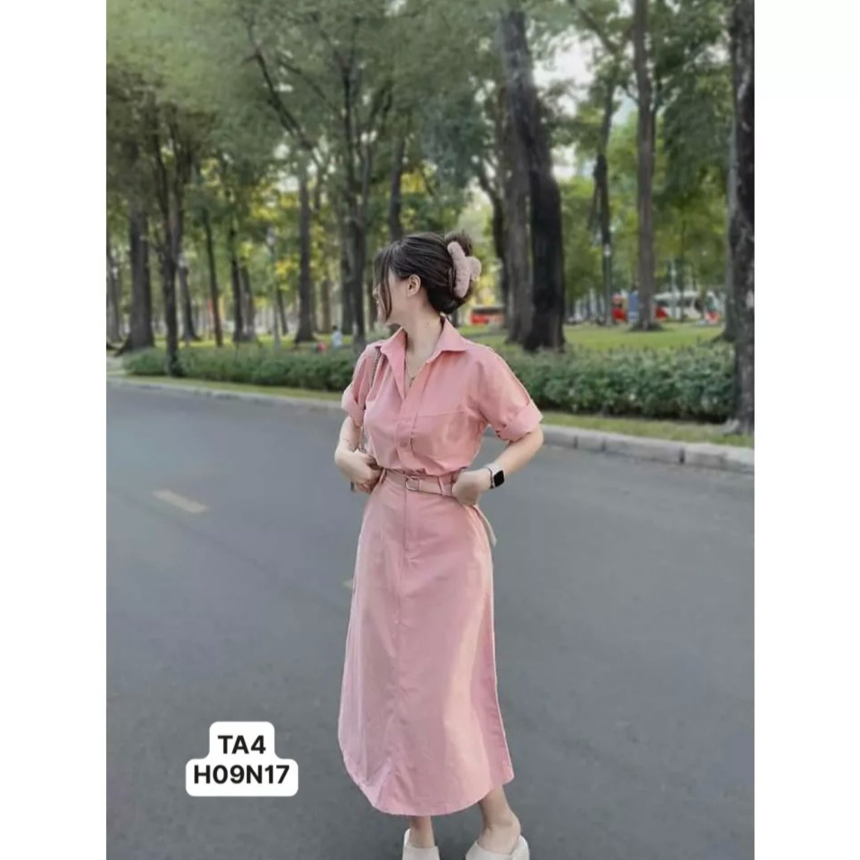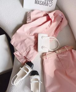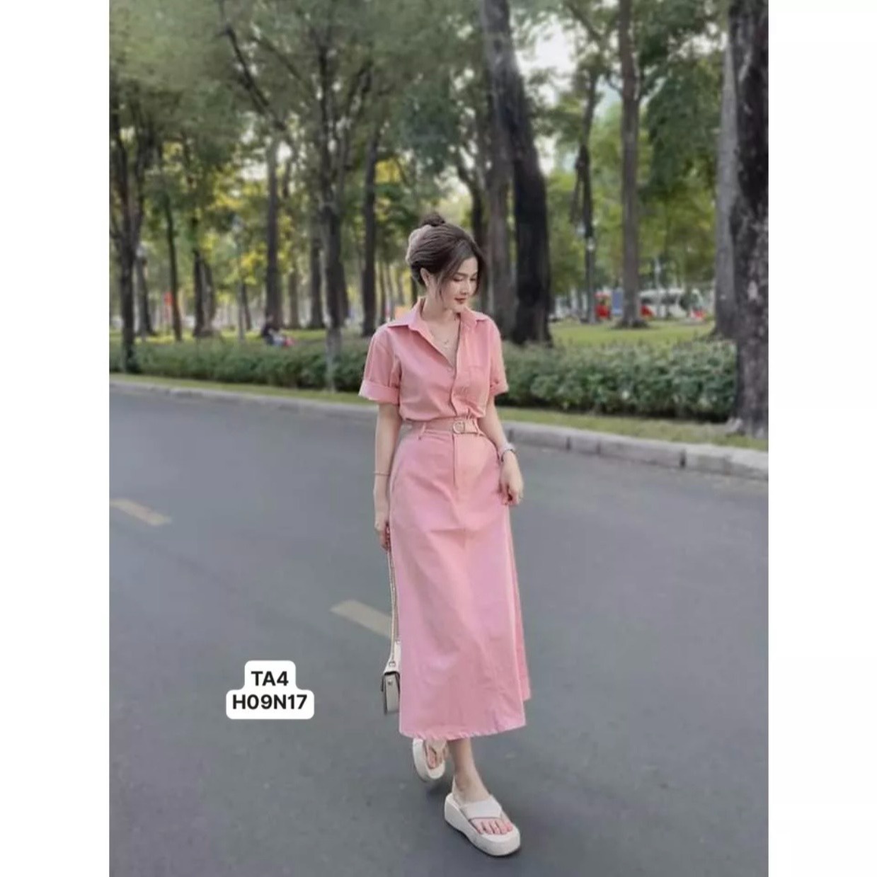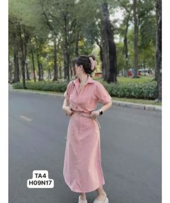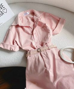 Set bộ đồ nữ áo sơ mi ngắn tay mix chân váy dài với tone màu hồng nhẹ nhàng, xinh xắn ,sáng da dành cho các tình yêu