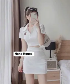 SET BỘ ĐỒ NỮ ÁO THUN CROTOP PHỐI CHÂN VÁY NGẮN BT007 – NANA FREESIZE < 53KG