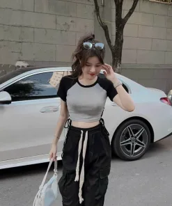 SET BỘ ĐỒ NỮ ÁO THUN GÂN BODY MIX QUẦN QUẦN FOR TÚI HỘP BT408 – NANA FREESIZE < 53KG