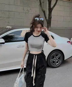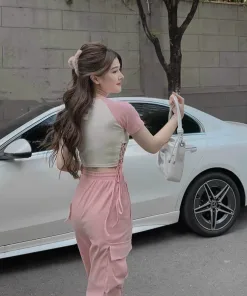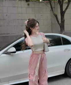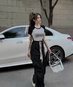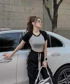 SET BỘ ĐỒ NỮ ÁO THUN GÂN MIX QUẦN FORD TÚI HỘP SA88 – SAM FREESIZE < 55KG