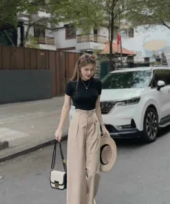 SET BỘ ĐỒ NỮ ÁO THUN GÂN MIX QUẦN ỐNG RỘNG BT507 – NANA FREESIZE < 55KG