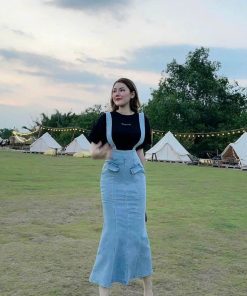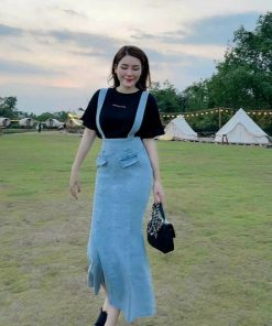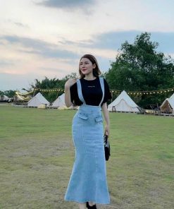 Chất liệu : ÁO THUN GÂN – CHÂN VÁY DENIM