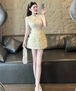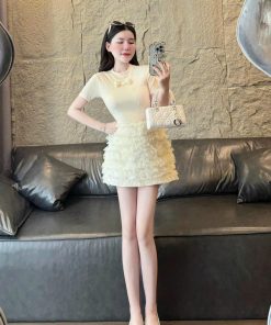 ➡CHẤT LIỆU:Thun tăm lạnh chấn váy bèo tầng